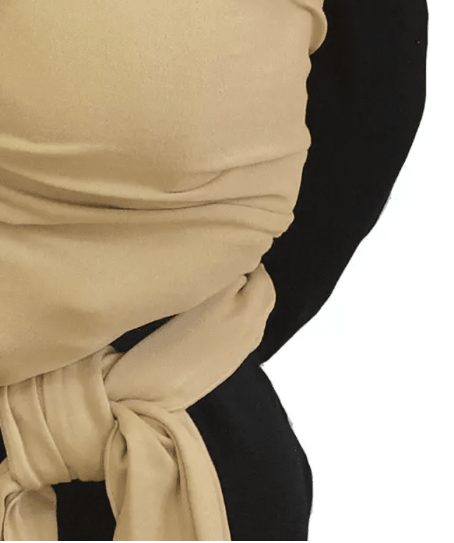 Du kan knyta bärsjalen antingen fram eller bakom din rygg, se nedan vilken längd vi rekommenderar. Det är enklast att knyta fram eftersom du då ser hur du knyter. Att knyta fram stabiliserar också knytningen lite extra.